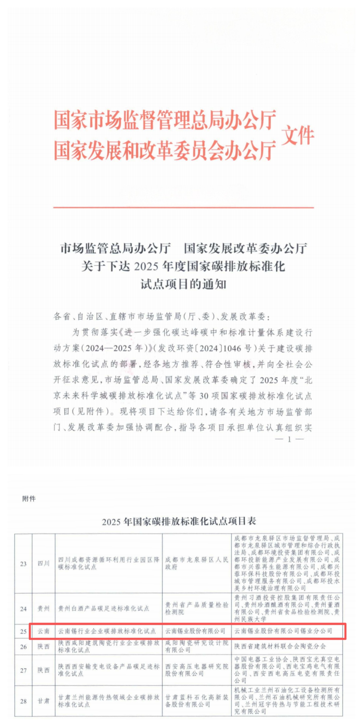 錫業(yè)股份獲批國(guó)家級(jí)錫行業(yè)碳排放標(biāo)準(zhǔn)化試點(diǎn)