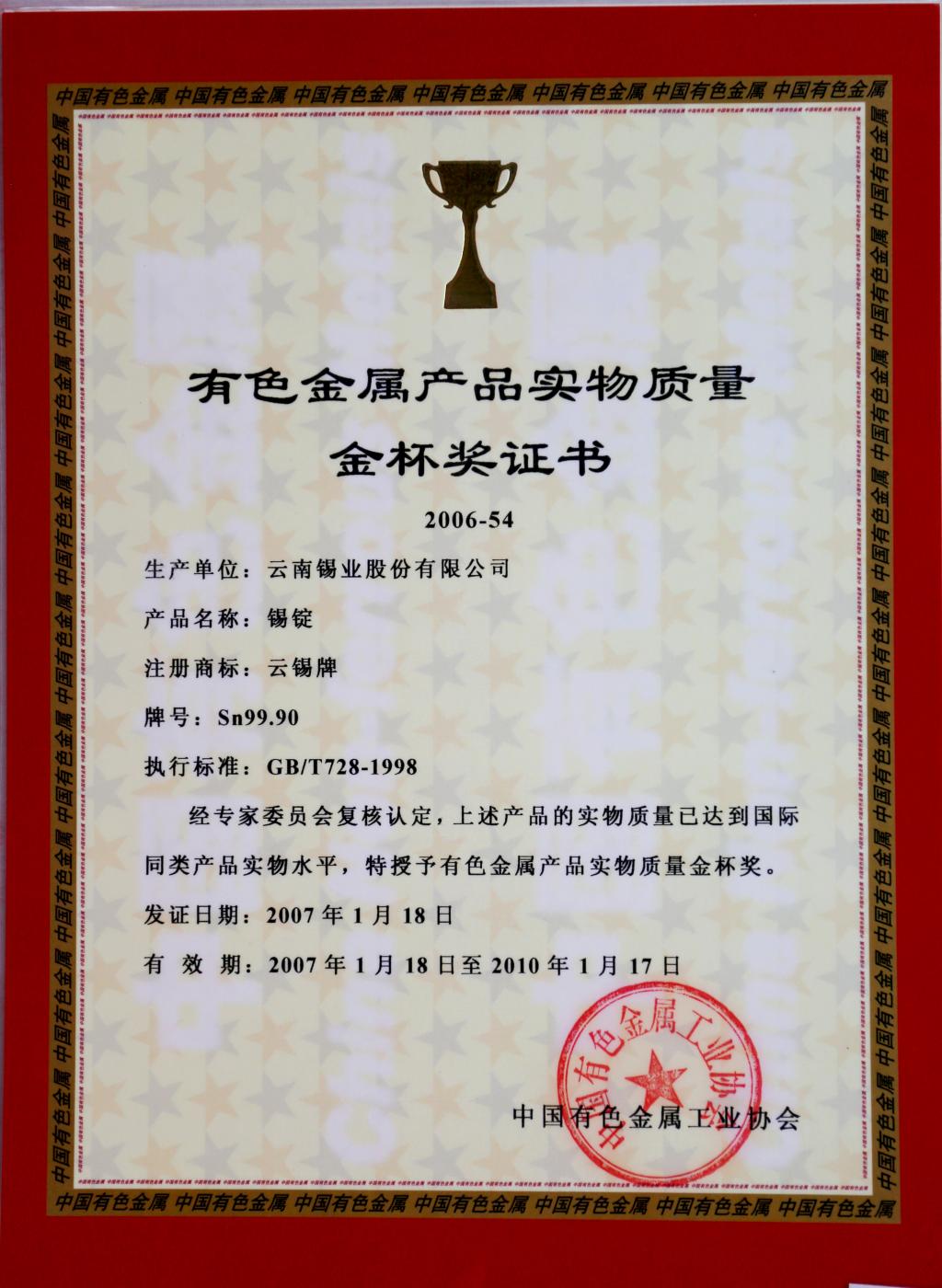 每一項榮譽都是錫業(yè)人智慧與汗水的凝聚