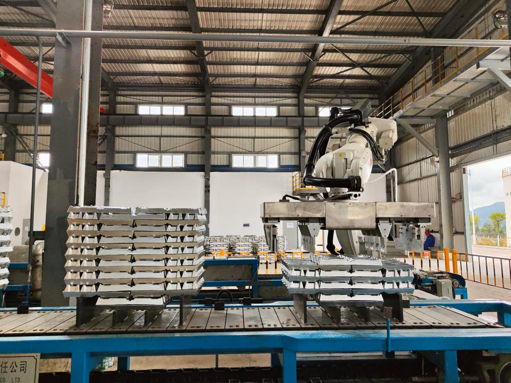文山鋅銦年產(chǎn)3萬噸壓鑄鋅合金項(xiàng)目是云錫文山片區(qū)兩公司“倍增翻番”計(jì)劃項(xiàng)目之一,也是文山州2022年“四個三十”重點(diǎn)建設(shè)項(xiàng)目之一,同時也是公司依托年產(chǎn)10萬噸鋅冶煉熔鑄系統(tǒng)高效穩(wěn)定運(yùn)行基礎(chǔ)優(yōu)化升級實(shí)施項(xiàng)目,采用先進(jìn)、環(huán)保、節(jié)能的合金工藝和設(shè)備,主體設(shè)備選用“有芯感應(yīng)爐+可傾有芯感應(yīng)爐+電阻保溫爐”,配套液壓升降式加料裝置,合金爐自帶稱重保障精準(zhǔn)配料,探針聯(lián)鎖穩(wěn)定控制出液流量,機(jī)器人高效自動扒皮,風(fēng)冷搭配均水噴淋,激光打碼自動碼垛、打包、稱重、貼簽,全流程自動化高,控制精準(zhǔn),操作規(guī)范,精選99.996%以上鋅片搭配99.85%重熔鋁錠和99.95B鎂錠作為合金錠生產(chǎn)原料,與現(xiàn)有工藝實(shí)現(xiàn)閉環(huán),形成了一套完整的環(huán)保、低耗、資源綜合利用的冶煉產(chǎn)業(yè)鏈體系。該項(xiàng)目于2022年8月8日開工,10月9日點(diǎn)火烘爐,10月27日投料一次性產(chǎn)出合格產(chǎn)品,其產(chǎn)品表面光滑平整、斷面晶粒均勻、金屬質(zhì)感強(qiáng)、錠垛規(guī)整,物規(guī)質(zhì)量、化學(xué)成分穩(wěn)定,各項(xiàng)指標(biāo)明顯優(yōu)于國標(biāo)。