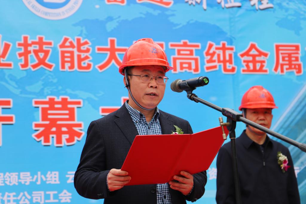 開幕式上,云南省總工會技術(shù)創(chuàng)新和職工素質(zhì)建設(shè)工作辦公室二級調(diào)研員彭啟瑞宣布:云南省第十九屆職工職業(yè)技能大賽錫化工高純金屬冶煉工決賽開賽。