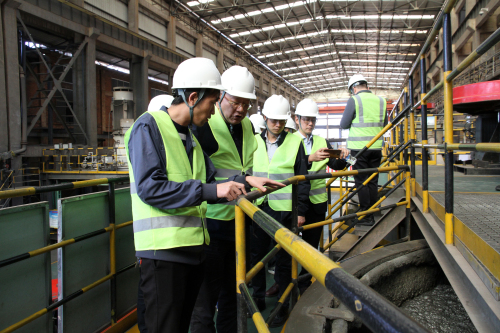 在選礦車間,大屯錫礦副經(jīng)理莫峰熱情接待了到訪的來(lái)賓。經(jīng)過(guò)入廠安全培訓(xùn)之后,來(lái)賓們進(jìn)入了秩序井然的生產(chǎn)車間,選礦車間的陪同人員介紹了車間的產(chǎn)能、工藝流程、科技創(chuàng)新等方面情況,在聽(tīng)取介紹和實(shí)地參觀后來(lái)賓們對(duì)于規(guī)范整潔的作業(yè)環(huán)境給予了充分肯定,而大型化、自動(dòng)化設(shè)備的廣泛運(yùn)用也給他們留下了深刻的印象。