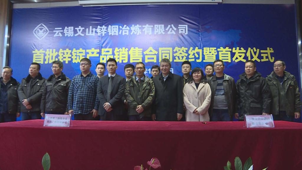 各簽約方在儀式上分別做了表態(tài)發(fā)言,并與文山鋅銦冶煉公司總經(jīng)理朱北平簽訂首批鋅錠銷售合同。隨后,參加簽約儀式的嘉賓和領(lǐng)導(dǎo)對首批產(chǎn)品的首發(fā)進(jìn)行了剪彩。