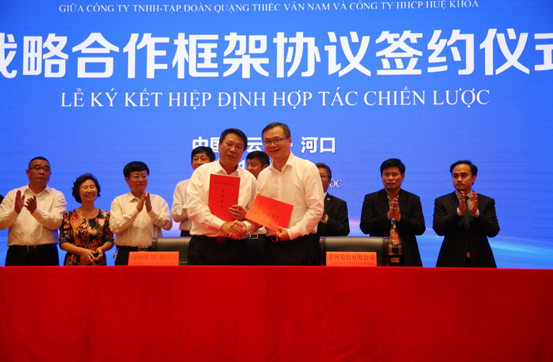 12月4日,以“親誠惠容·合作發(fā)展”為主題的2018年第十八屆中越(河口)邊境經(jīng)濟(jì)貿(mào)易交易會(huì)(以下簡(jiǎn)稱“邊交會(huì)”)在河口開幕??毓晒緫?yīng)邀參加,并與惠科股份有限公司達(dá)成戰(zhàn)略合作??毓晒军h委書記、董事長(zhǎng)張濤,黨委常委、副總經(jīng)理程睿涵,黨委常委、工會(huì)主席、錫業(yè)股份董事長(zhǎng)湯發(fā),副總經(jīng)理宋興誠等領(lǐng)導(dǎo)出席相關(guān)活動(dòng)。