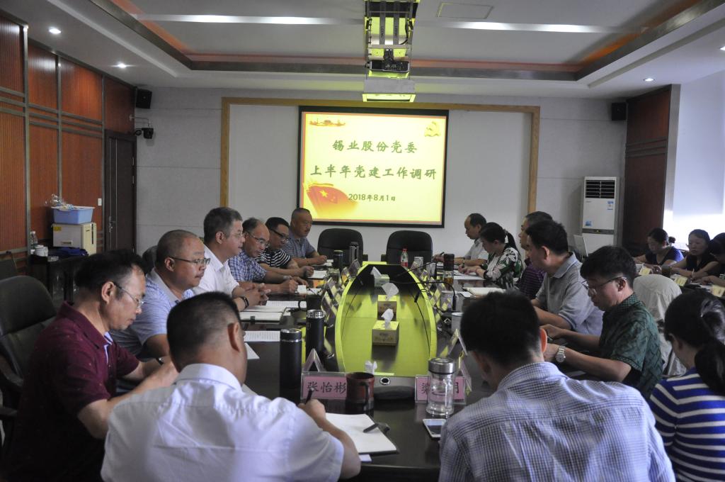 7月31至8月1日,錫業(yè)股份黨委書記、董事長湯發(fā),黨委委員、紀委書記羊慎率第一調(diào)研組,對郴州公司2018年上半年黨建、生產(chǎn)經(jīng)營、深改攻堅等工作進行調(diào)研,要求統(tǒng)一思想,堅定信心,提振士氣,凝聚攻堅,全力實現(xiàn)扭虧目標和持續(xù)健康發(fā)展。