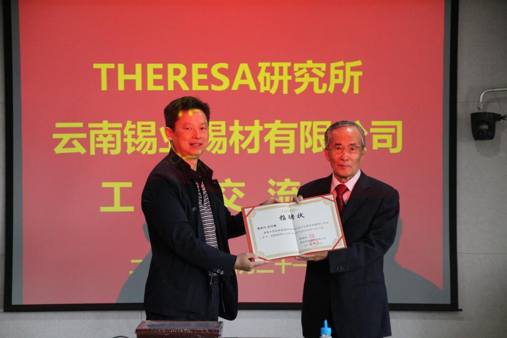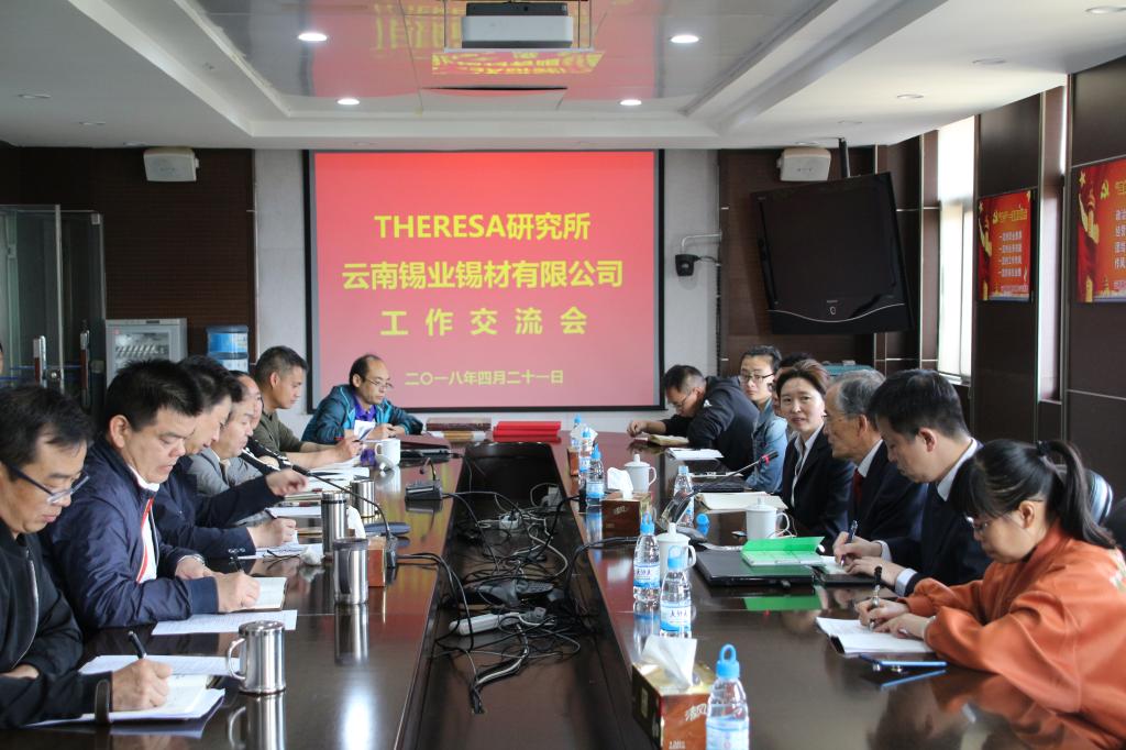 4月21日,錫材公司與日本THERESA研究所工作交流會(huì)暨“長(zhǎng)谷川正行工作室”揭牌儀式在昆明總部舉行。THERESA研究所社長(zhǎng)長(zhǎng)谷川正行、助理成田辰彥,錫材公司黨委書(shū)記、董事長(zhǎng)王鵬飛、總經(jīng)理白海龍、副總經(jīng)理劉寶權(quán)、張欣以及相關(guān)技術(shù)人員和管理人員50余人參加交流會(huì)和揭牌儀式。