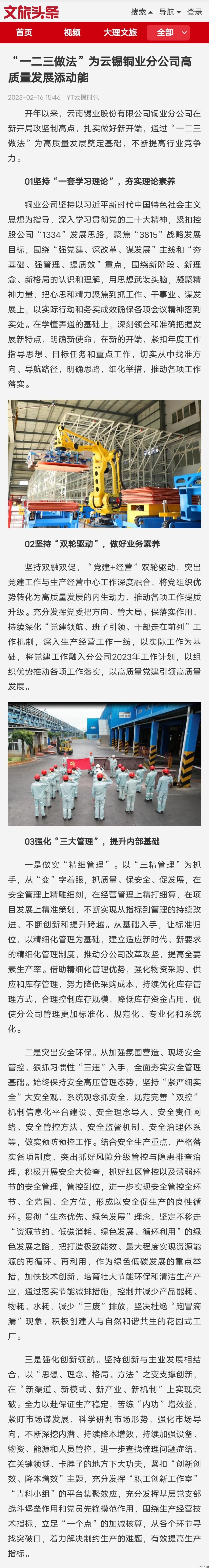 云南國資、文旅頭條:“一二三做法”為云錫銅業(yè)分公司高質(zhì)量發(fā)展添動能