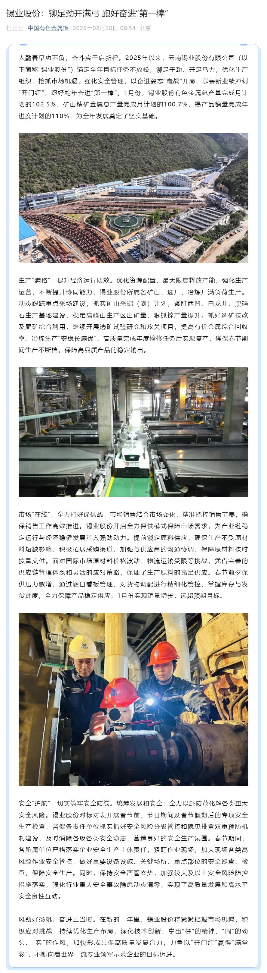 國務(wù)院國資委、云南國資、中國有色金屬報:云錫股份構(gòu)筑競爭新優(yōu)勢 奮進“開門紅”