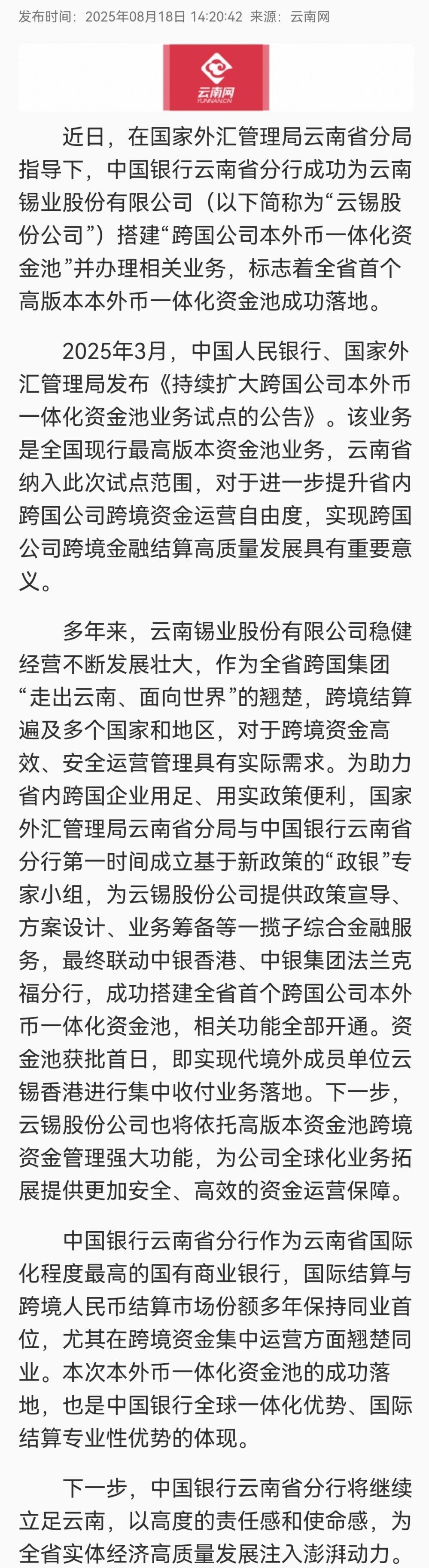 云南網:云南省首個跨國公司本外幣一體化資金池落地云南中行