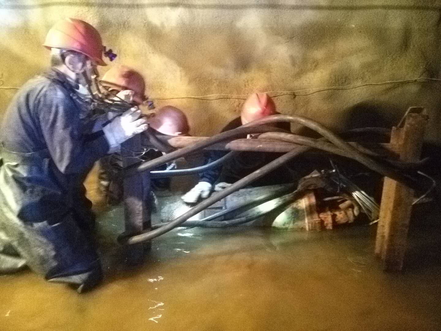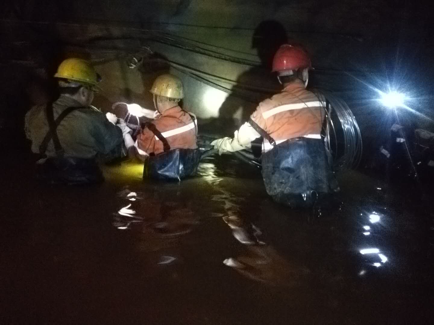 1700米中段,2公里多的上班路變成了一片汪洋,巷道、生產(chǎn)設(shè)備被洪水淹沒。由于水流湍急,水位持續(xù)上漲,救援搶險工作進展緩慢。危難關(guān)頭,干部職工脫下身上的衣物,就淌進了齊腰深的洪流中,一路摸索前行,設(shè)法向生產(chǎn)設(shè)備靠近,最終將被淹沒的設(shè)備搶救出來。