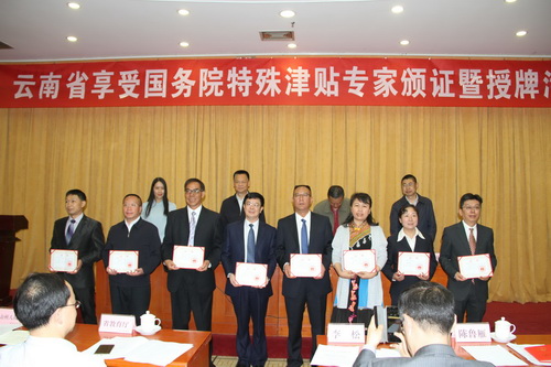4月12日,在云南省2018年獲國(guó)務(wù)院政府特殊津貼專家頒證暨新設(shè)立專家基層科研工作站和省級(jí)博士后站授牌活動(dòng)會(huì)上,老廠分公司竹葉山坑一工區(qū)采礦一隊(duì)隊(duì)長(zhǎng)、高級(jí)技師楊勇榮獲2018年國(guó)務(wù)院政府特殊津貼。云南省人社廳黨組副書(shū)記、副廳長(zhǎng)和江峰、副廳長(zhǎng)邢渭東、省委組織部人才工作處處長(zhǎng)肖峰出席活動(dòng)并為2018年榮獲享受?chē)?guó)務(wù)院政府特殊津貼的48位各行各業(yè)專家人才現(xiàn)場(chǎng)頒發(fā)證書(shū)。
