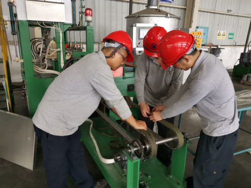 郴州高新材料分公司的無鉛焊條自動澆鑄設備是為了推進無鉛焊條生產(chǎn)自動化、提高勞動生產(chǎn)效率的技改項目和措施,分公司錫材車間員工利用國慶假期時間,順利開展了調(diào)試無鉛條自動澆鑄機工作,努力解決傳送設備對無鉛條外觀造成的不良影響。與此同時,錫材車間員工根據(jù)實際生產(chǎn)需求,不斷溝通聯(lián)系自動澆鑄機供應制造商,不斷對自動澆鑄機進行技術(shù)升級改進;面對設備調(diào)試中的種種困難,車間的技術(shù)骨干們堅守崗位,盡職盡責,認真總結(jié)經(jīng)驗,連續(xù)嘗試更換了4種隔離傳送材料,確保了無鉛焊條自動澆鑄機的生產(chǎn)傳送難題得以較好地解決。