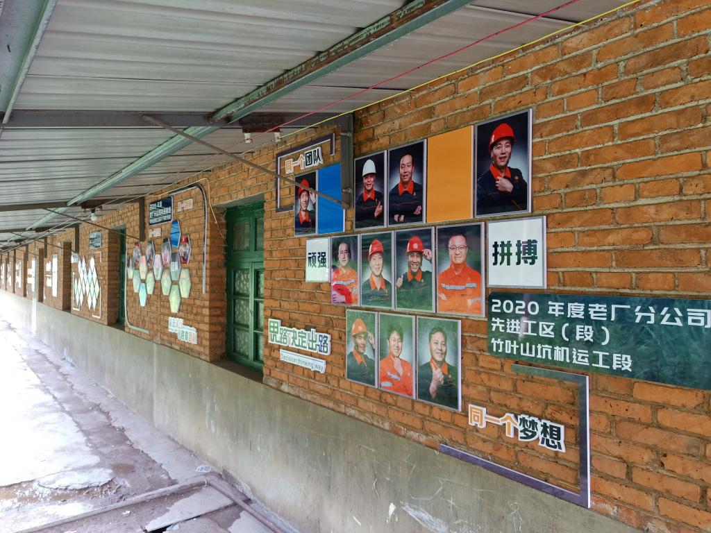 有一群人,他們向往陽(yáng)光,卻深入百丈井下,不辭辛苦;他們生而平凡,卻從不低頭認(rèn)輸,發(fā)光發(fā)熱;他們是迎難而上的錫山人,是不屈不撓的竹坑人。二十六載歲月積淀,任爾東西南北風(fēng),咬定錫山不放松,是竹葉山坑的根脈和記憶。這片扎根在廢石碴上的堅(jiān)韌土地,發(fā)生了許許多多熱淚盈眶的故事,涌現(xiàn)出了一批批頑強(qiáng)拼搏的先進(jìn)人物。技能大師楊勇、云嶺技師張躍源、勞動(dòng)模范李批優(yōu)等就是其中的典型代表。為集中展示先進(jìn)事跡,汲取榜樣力量,竹葉山坑依托老職工宿舍17幢原有墻面,用一幅幅圖片和一句句格言,圖文并茂展現(xiàn)出竹坑先進(jìn)模范、先進(jìn)工段和先進(jìn)班組的風(fēng)采,把職工上下班的必經(jīng)之路打造成“先進(jìn)集體和先進(jìn)個(gè)人之路”,讓職工潛移默化向先進(jìn)致敬、向榜樣看齊。