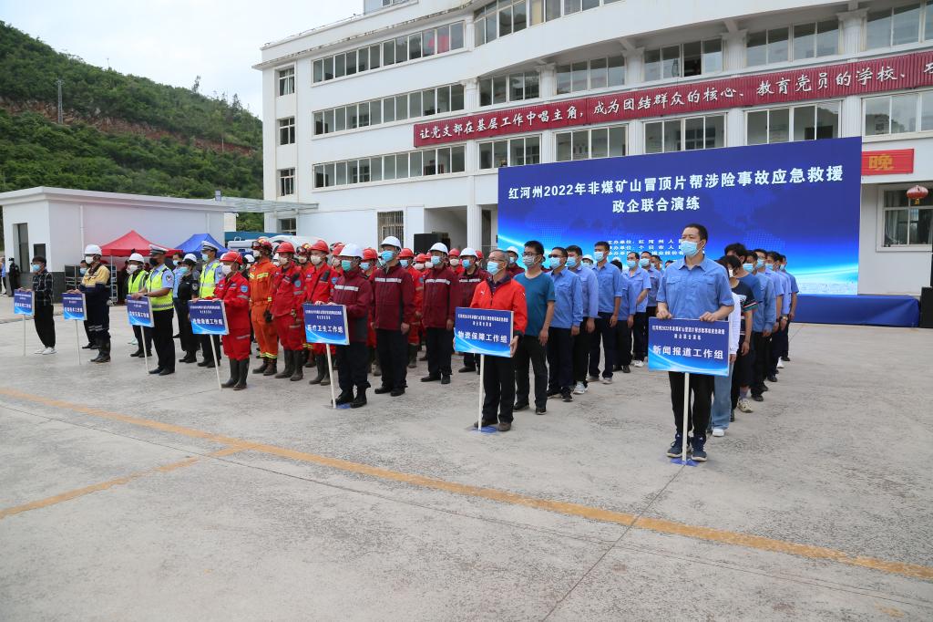6月23日,由紅河州人民政府主辦、個(gè)舊市人民政府承辦、云南錫業(yè)股份有限公司協(xié)辦的紅河州2022年非煤礦山冒頂片幫涉險(xiǎn)事故應(yīng)急救援政企聯(lián)合演練在大屯錫礦舉行。認(rèn)真學(xué)習(xí)貫徹落實(shí)習(xí)近平總書記關(guān)于安全生產(chǎn)重要論述,推動(dòng)各級(jí)應(yīng)急管理責(zé)任落實(shí),壓實(shí)安全生產(chǎn)責(zé)任,切實(shí)提高紅河州非煤礦山事故應(yīng)急救援能力。紅河州人民政府副秘書長(zhǎng)楊克平,紅河州應(yīng)急管理局局長(zhǎng)張錳,錫業(yè)股份黨委副書記、董事長(zhǎng)、總經(jīng)理劉路坷,錫業(yè)股份黨委委員、副總經(jīng)理王建偉,錫業(yè)股份黨委委員、大屯錫礦黨委書記、經(jīng)理王壽安等出席演練活動(dòng)。