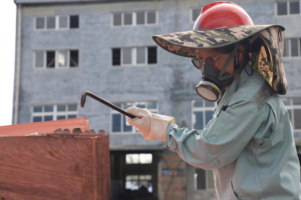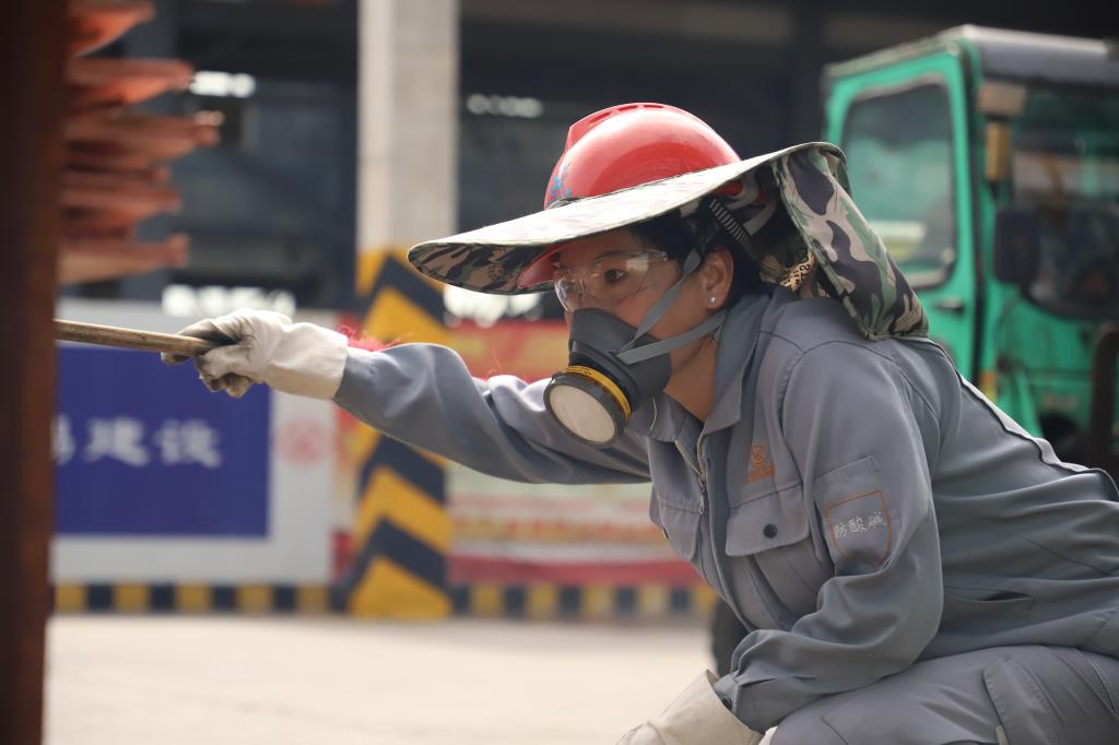 在一頂頂特殊的安全帽下,是一張張掛滿汗珠的臉龐;拉開口罩、取下護目鏡,個個都是溫柔的動人笑臉。她們每天與陰極銅板打交道,在產(chǎn)品運輸區(qū)域經(jīng)受著風(fēng)吹日曬雨淋,每人佩戴的特殊安全帽因此而來,是質(zhì)監(jiān)中心為了緩解每天八小時的戶外暴曬對姑娘們皮膚造成的傷害,踐行“我為群眾辦實事”承諾的體現(xiàn),也成為了銅業(yè)分公司質(zhì)量監(jiān)測中心檢驗三組的標志。
