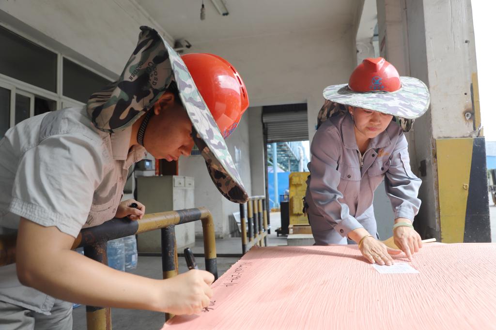 今年以來,銅業(yè)分公司全力沖刺更高產(chǎn)量目標,每天的陰極銅產(chǎn)品產(chǎn)量較往年增加了近20%。檢驗三組每天要完成160多捆銅產(chǎn)品的檢驗打包工作,也就是每天要應(yīng)對2800多片銅板的質(zhì)量檢驗。為了確保完成任務(wù),班組也從原本的8小時常班制調(diào)整為常班加中班的兩班模式。檢驗三組的11名員工中只有2名男員工,每個班完成稱重、檢驗、定級、貼標簽等工作需要4個人,班組人數(shù)并不能較好滿足兩個班輪班作業(yè)。為了減輕中班壓力,常班人員主動承擔(dān)了更多的工作量,兩個班重疊作業(yè),全力完成每天410噸的檢驗任務(wù),為每一片出廠的陰極銅產(chǎn)品把好質(zhì)量關(guān)。